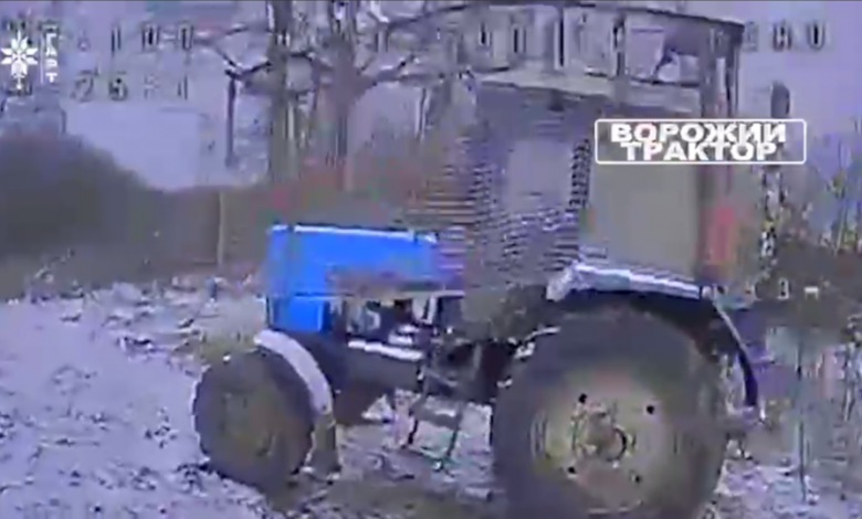 Антидроновий захист не врятував російський трактор. Скрін з відео 16-го корпусу