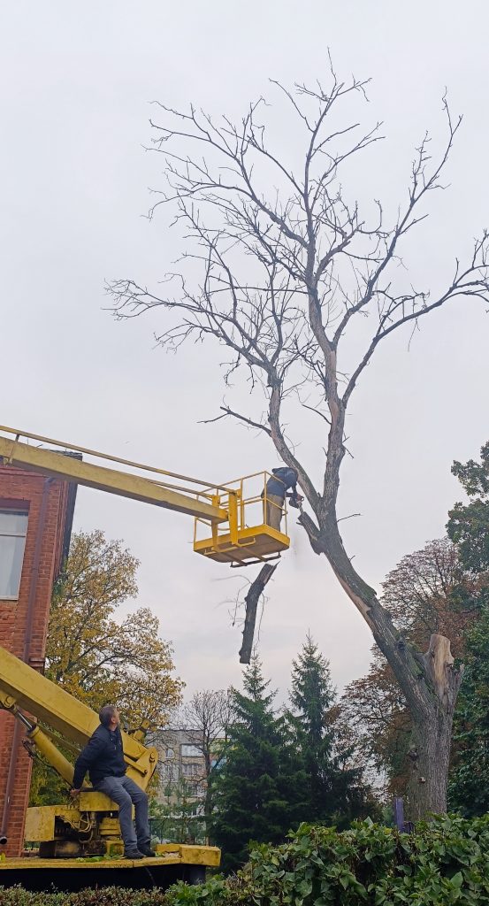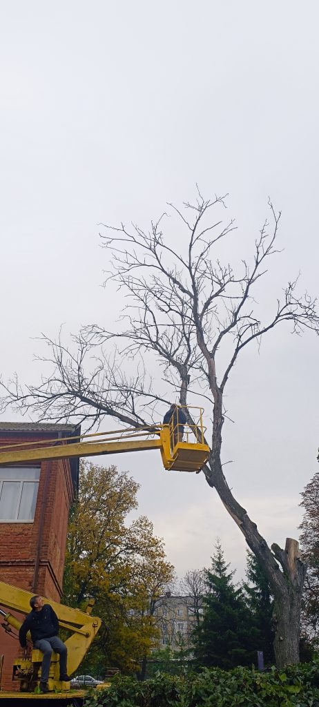 Гілки в’яза небезпечно звисали над дахом дитячого садочка, тому роботи вимагали максимальної обережності.