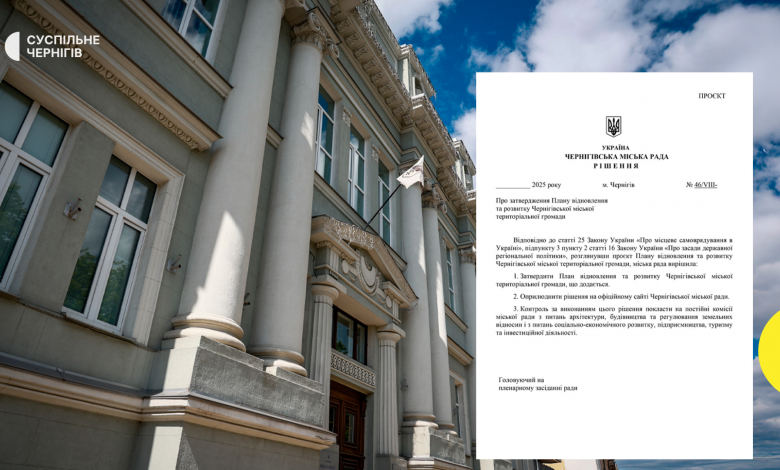 Чернігівська міськрада затвердила план відновлення та розвитку громади, який охоплює 125 проєктів загальною вартістю 20,7 мільярда гривень. Документ передбачає відбудову інфраструктури, зміцнення безпеки, підтримку бізнесу, покращення соціальних послуг та екологічну модернізацію міста.
