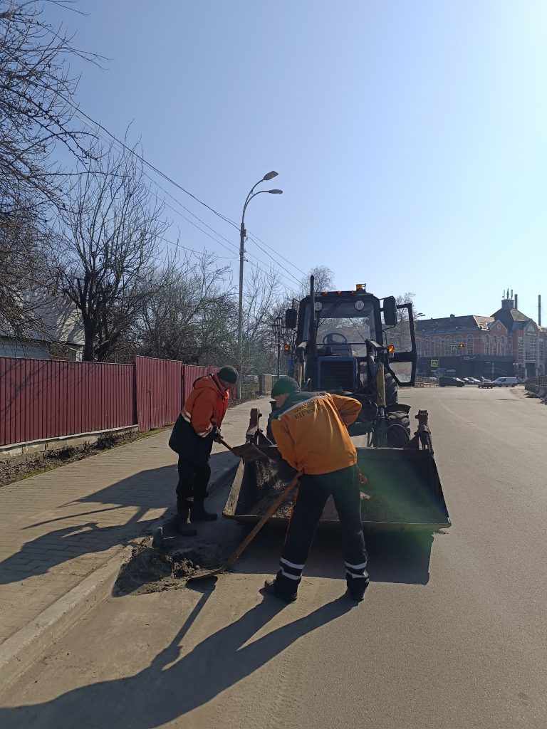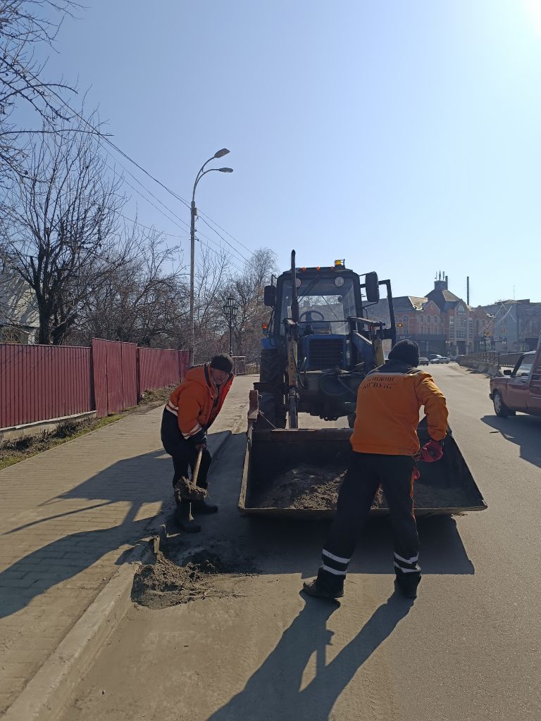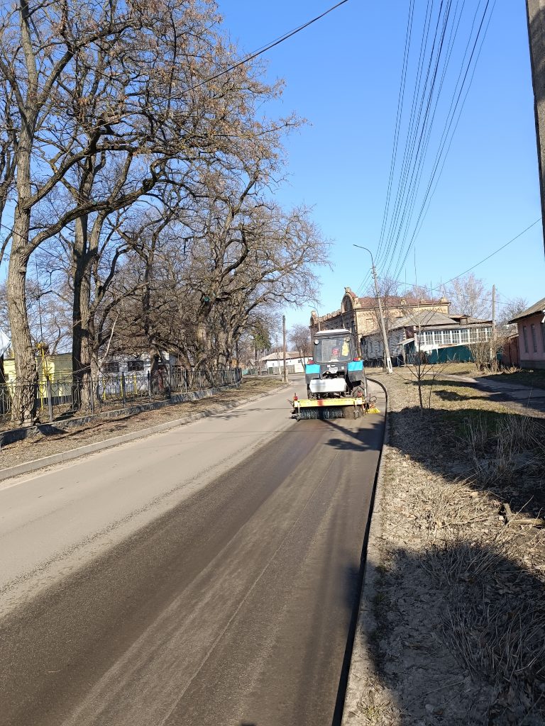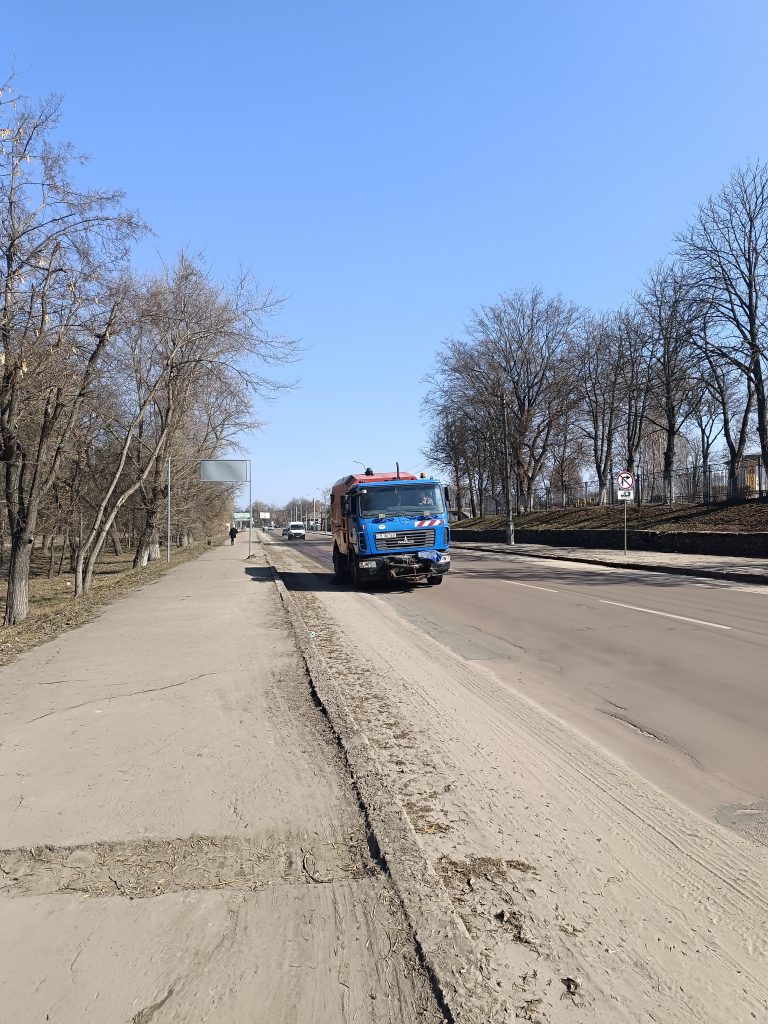 Команда КП «ВУКГ» активно працює на вулицях міста, щоб очистити дороги від вуличного змету: залишків піщано-сольової суміші, сміття та торішнього листя.