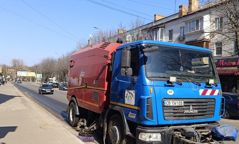 У Ніжині триває механізоване та ручне прибирання дорожнього змету