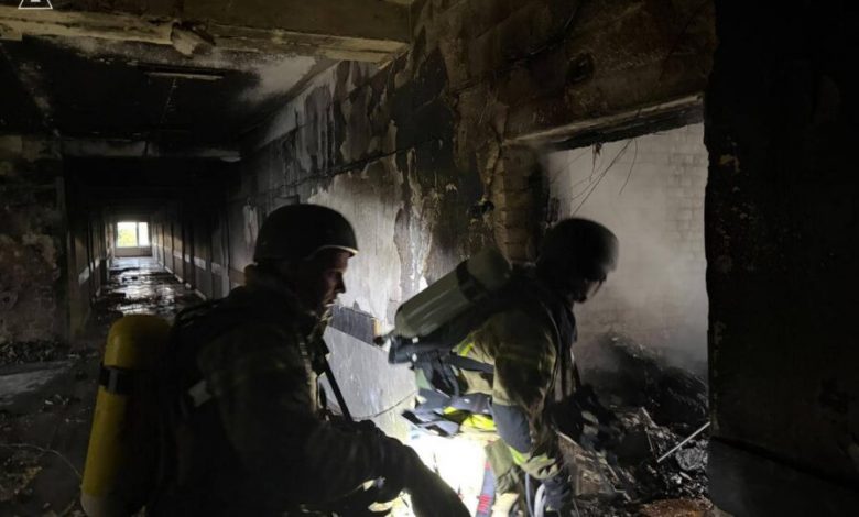 Також внаслідок атаки сталось загоряння двоповерхової нежитлової споруди. Ще до прибуття рятувальників було госпіталізовано чоловіка. Пожежу ліквідовано.