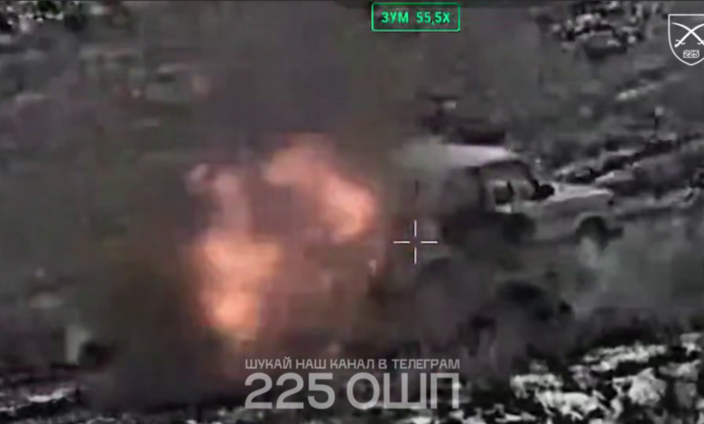 Окупанти не встигли відійти від своєї машини, як були уражені. Скрін з відео 225-го полку
