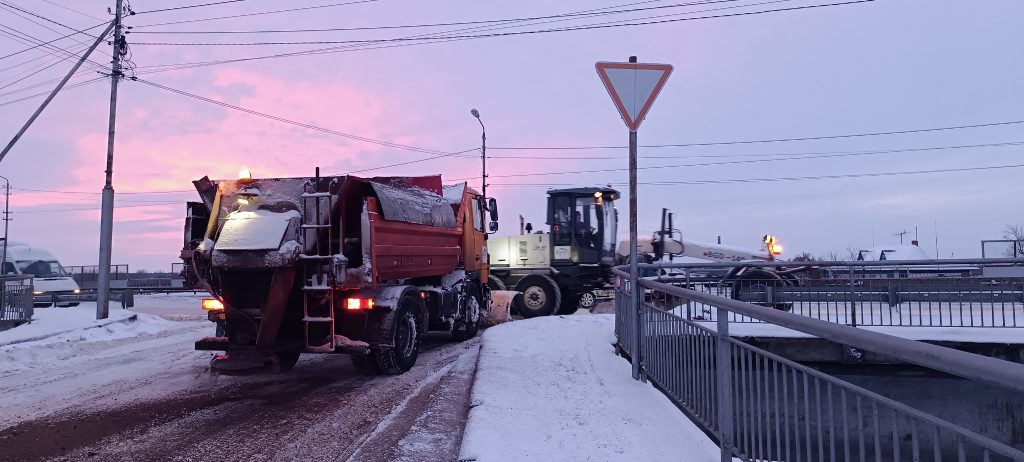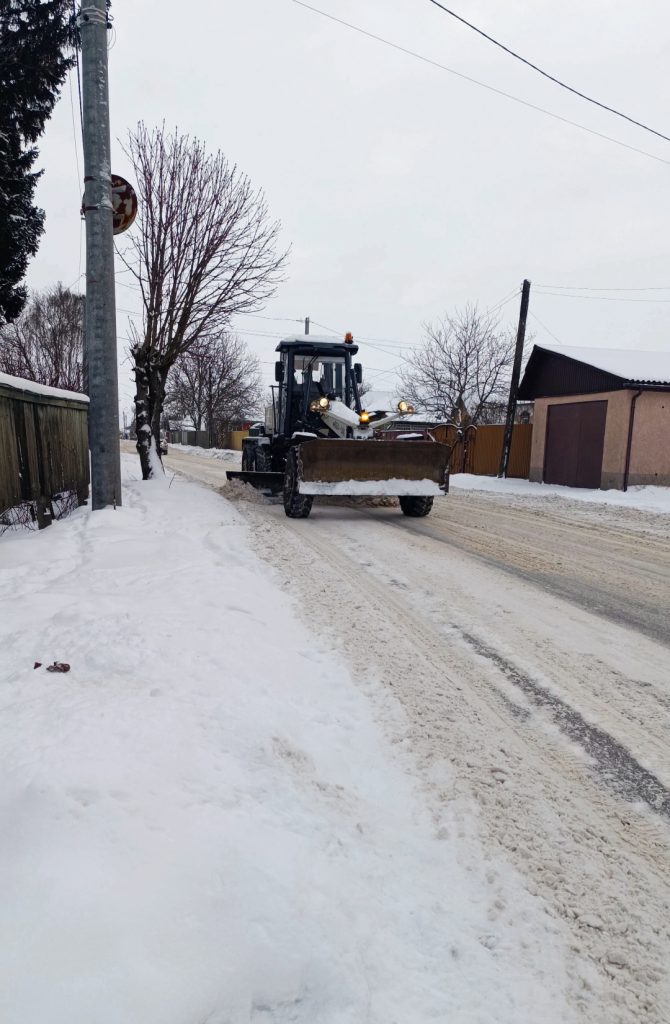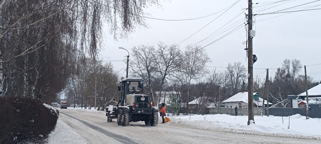 На вулицях міста працює важка спецтехніка — автогрейдер BGD-140. Цей «велетень» незамінний там, де звичайні машини не справляються: він розбиває твердий лід та прибирає снігові намети.