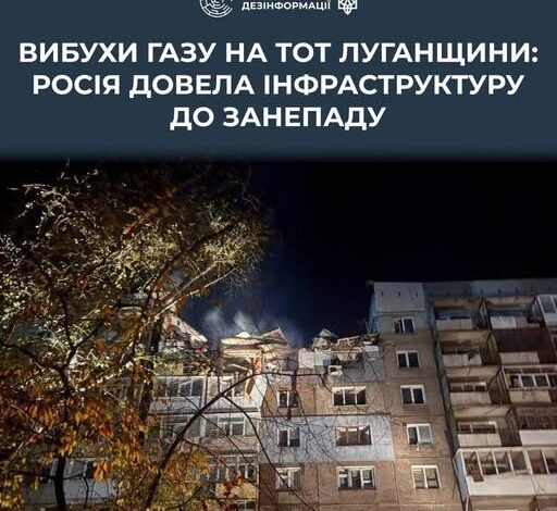 В окупованому Алчевську в ніч на 13 жовтня стався потужний вибух газу в багатоповерхівці, внаслідок якого загинули двоє людей. На думку Центру протидії дезінформації, це свідчить про повну деградацію інфраструктури на територіях, захоплених росією з 2014 року.