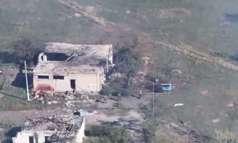 На кадрах, знятих з безпілотника, видно, як українські бійці відкривають вогонь по групі з чотирьох окупантів, які зупинилися на відкритій місцевості.
