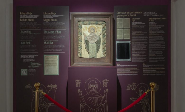 Експозиція робить це через автентичні свідчення доби — документи, включно з актами Константинопольського патріархату з 1317 року, які пов’язані з боротьбою за Київську та інші митрополії, документи з Держархіву Швеції, Державного архіву Литви і Державної архівної служби України (доступні для перегляду на проекторі), печатки, монети, карти, зброю і хоругви полків. Представлені матеріали ілюструють відновлення Київської митрополії, участь полків з українських земель у вирішальних битвах доби, а також трансформацію Київського князівства у Київське воєводство і народження української незламності в 1471 році.
