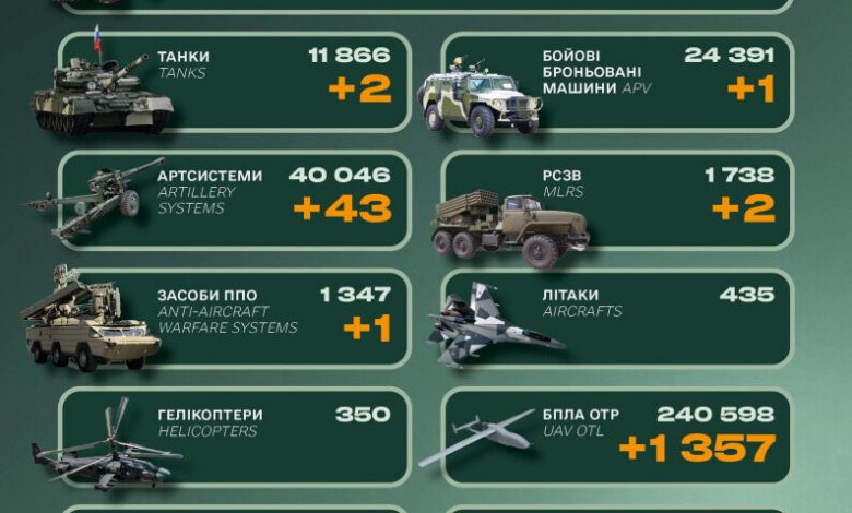 - БПЛА оперативно–тактичного рівня — 240 598 (+1 357);