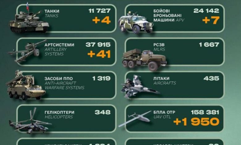 За минулу добу армія країни-агресора втратила 900 одиниць особового складу, чотири танки та 41 артсистему.