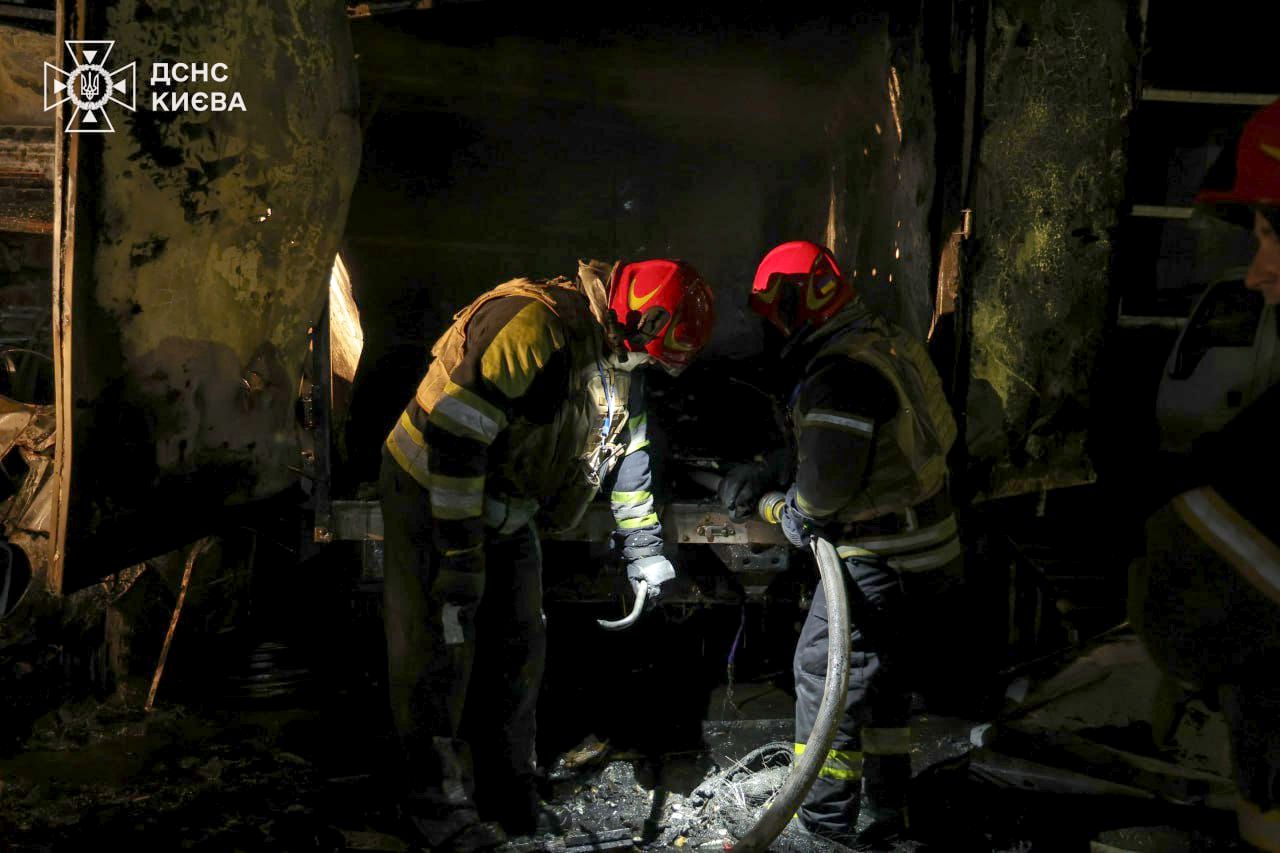 «На одній локації горіли чотири малотоннажні вантажівки, пошкоджено дві будівлі та авто поруч; за іншою адресою горіння уламків БПЛА ліквідовано до прибуття підрозділу», — розповіли у ДСНС.