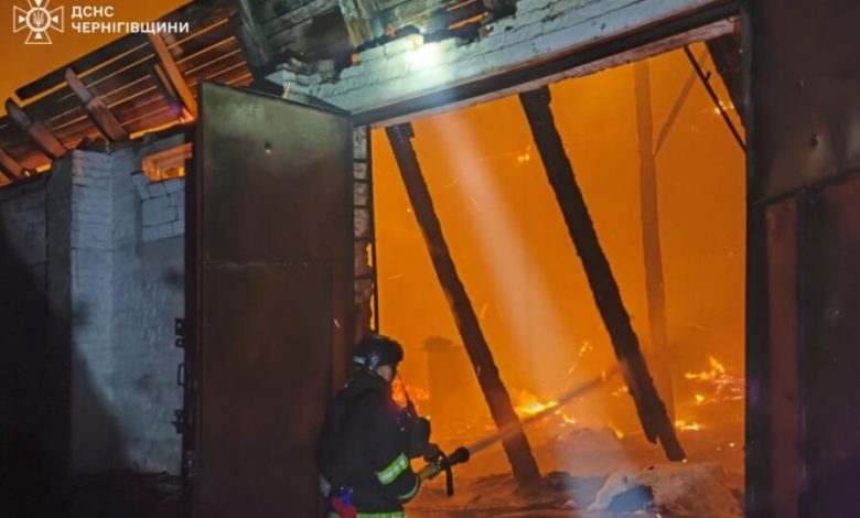 У Корюківці через влучання БПЛА по території сільгосппідприємства загорівся ангар. Рятувальники оперативно ліквідували пожежу.