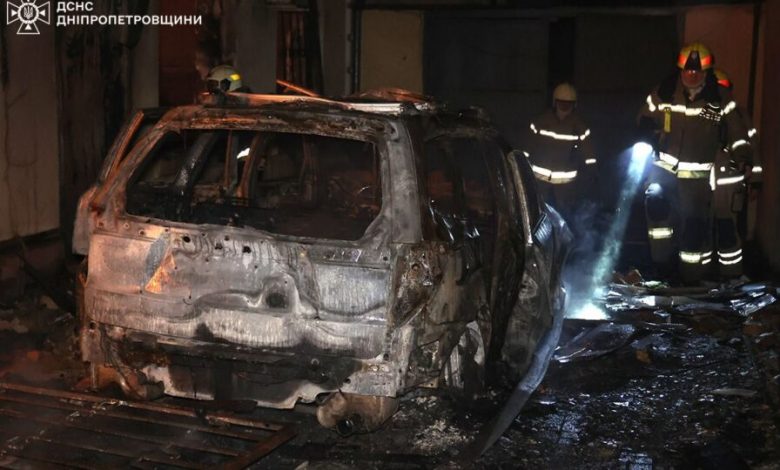 У Дніпрі російський БПЛА влучив в одноповерхову будівлю, що не експлуатувалася. Виникла пожежа, знищено один автомобіль, ще один — пошкоджений.