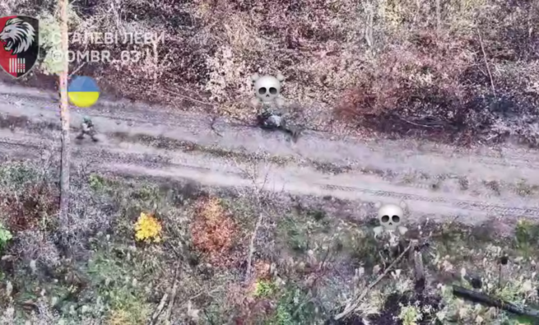 На перших кадрах була показана засідка на двох окупантів, які ішли дорогою, потрапили під обстріл і загинули на узбіччі.