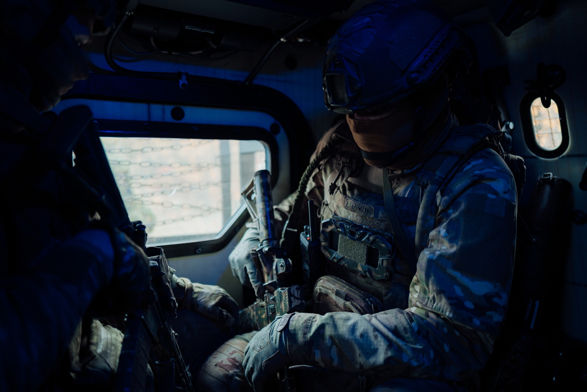 На опублікованих фото, автором яких є Павло Іткін, зафіксовані тренування хартійської піхоти із застосуванням бронемашини.