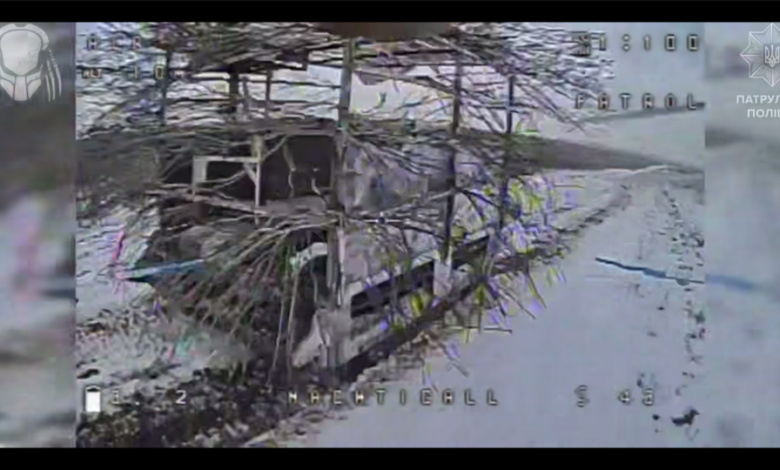Ворожий НРК був прикритий антидроновим захистом у вигляді «мангала» з якого стирчав рубаний дріт, але це завадило пілотам бригади «Хижак» при Департаменті патрульної поліції завдати влучного удару.