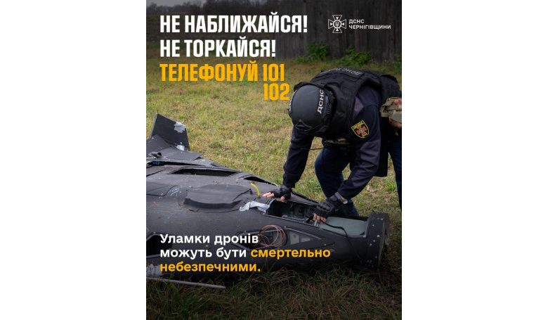 Звертаємо увагу: на Чернігівщині траплялися випадки трагічної загибелі цивільних осіб через ігнорування загроз. У тому числі – у зв’язку зі спробами розібрати чи здійснити інші дії з дронами, які впали.
