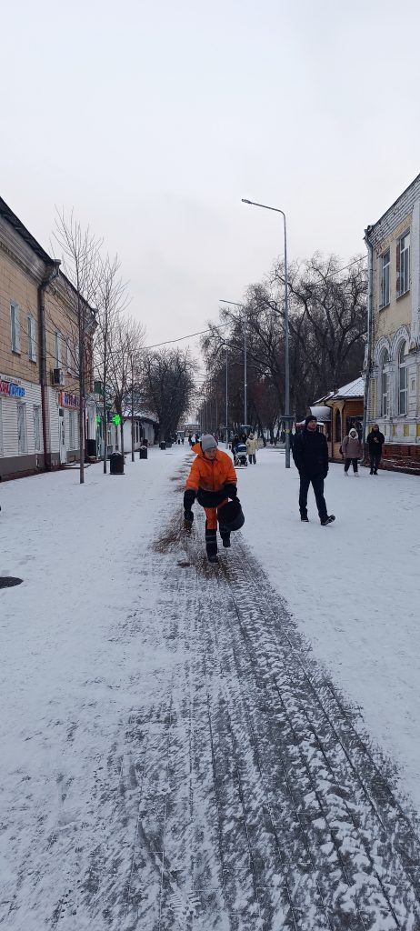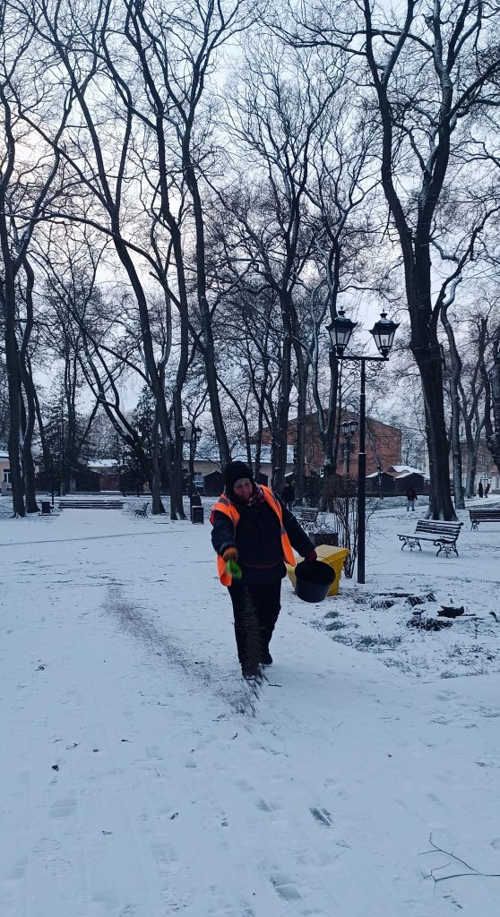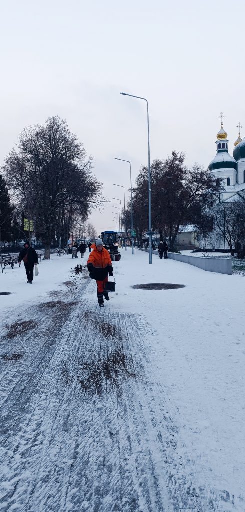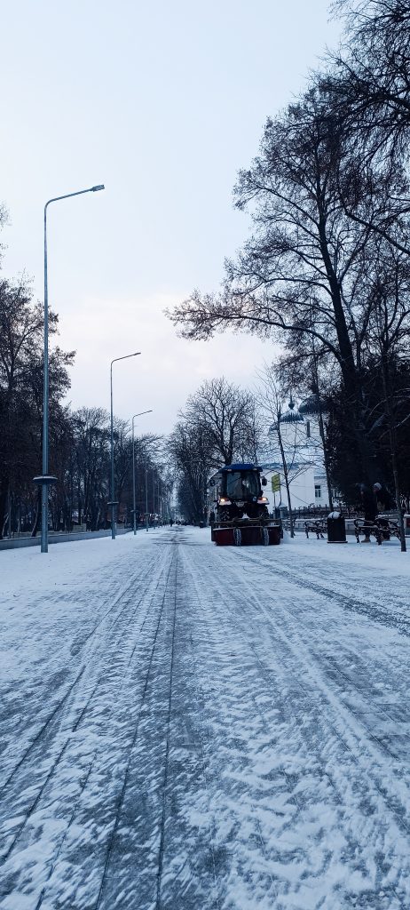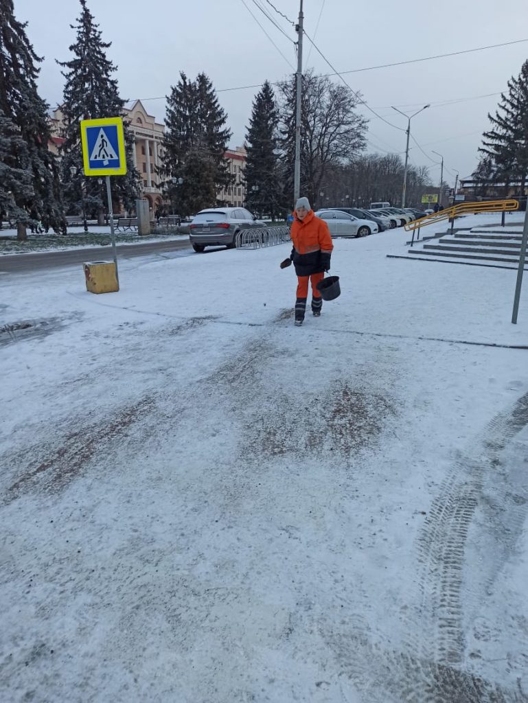 З першим снігом, місто! Спецтехніка КП «ВУКГ» працює на повну, прибиральники вулиць, парків і скверів обробляють доріжки та тротуари протиожеледною сумішшю, щоб пересування було безпечнішим.