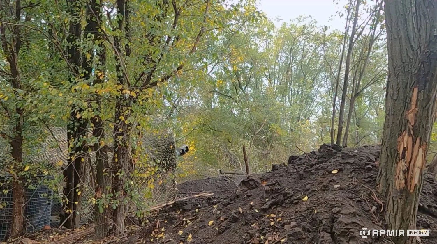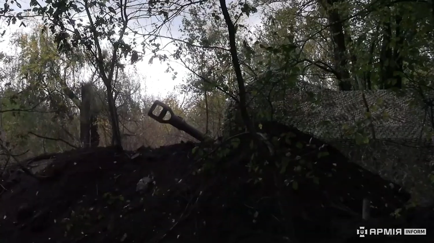 Глибокий котлован у зріст людини гарно маскує «самохідку», приховуючи будь-які ознаки вогневої позиції від ворожих безпілотників. Видно, що під час спорудження укриття працювали на совість, розуміючи, що від ретельно виконаної роботи залежить життя бійців розрахунку.