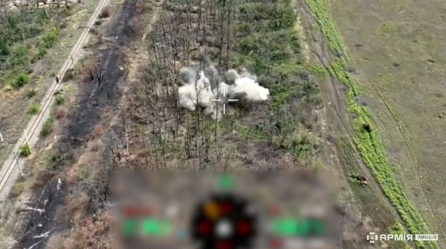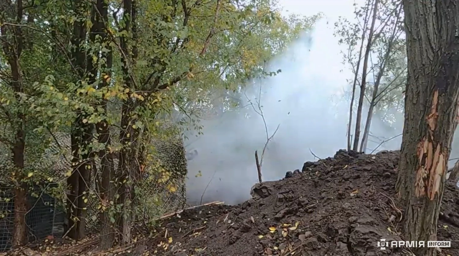 Артилеристи показують на моніторі місце влучання. Гриб розриву осколково-фугасного снаряда поступово розсіюється, і можна побачити, що місце, де ще секунду тому були ворожі піхотинці, спорожніло — їх розкидало вусібіч вибуховою хвилею і, вочевидь, добряче посікло уламками.