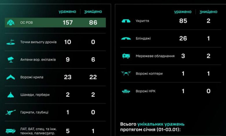 За 3 дні січня підрозділами угруповання СБС знищено/уражено 2057 цілей, з них — 588 особовий склад противника.