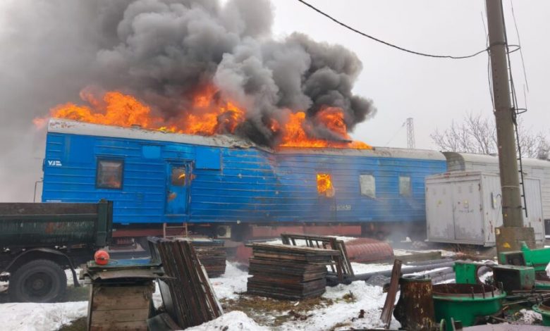 Пошкоджені вагони електропоїздів під час відстою, вантажні вагони, локомотиви, колії, електромережі, адміністративні та виробничі будівлі.