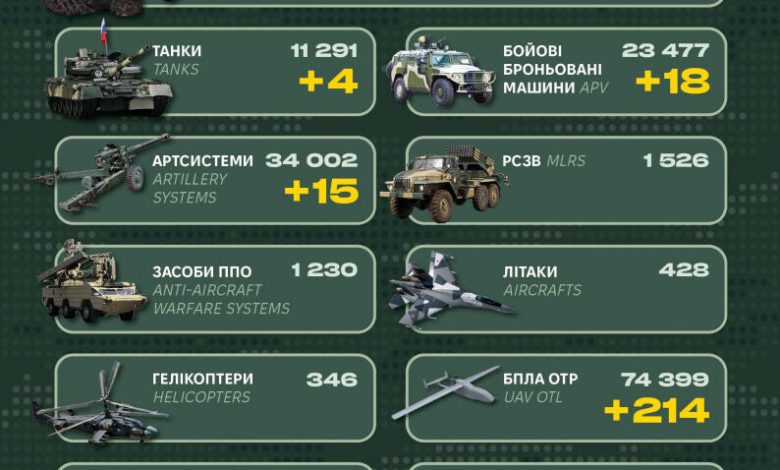 Загальні бойові втрати противника з 24.02.22 по 26.10.25 орієнтовно становлять: