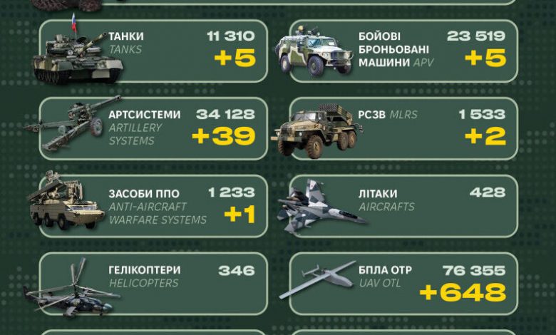 За добу росія втратила 970 військових, засіб ППО та 5 танків