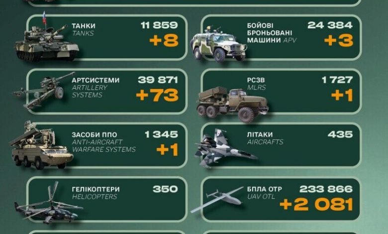 За добу росія втратила понад 1070 військових, вісім танків і три ББМ