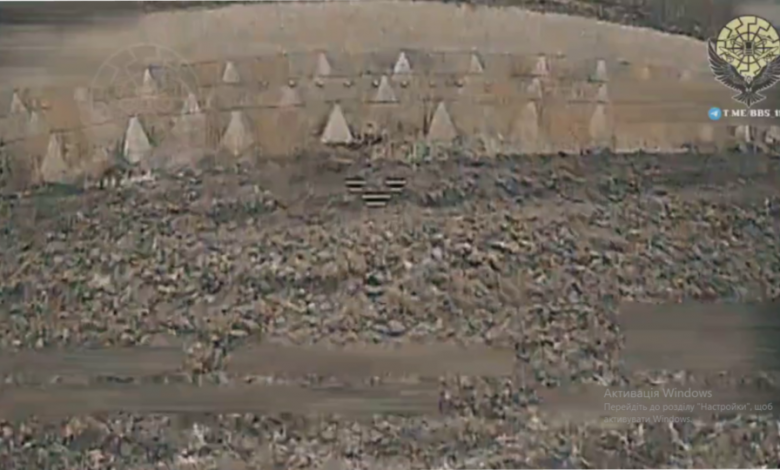 Бійці батальйону безпілотних систем 110-ї механізованої бригади імені генерал-хорунжого Марка Безручка знищили ворожого піхотинця, який заплутався у колючому дроті між бетонних пірамід.
