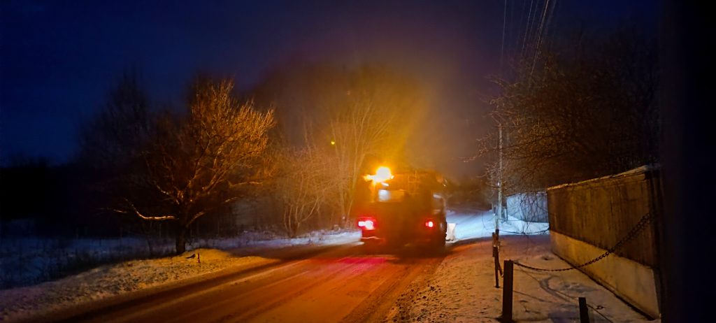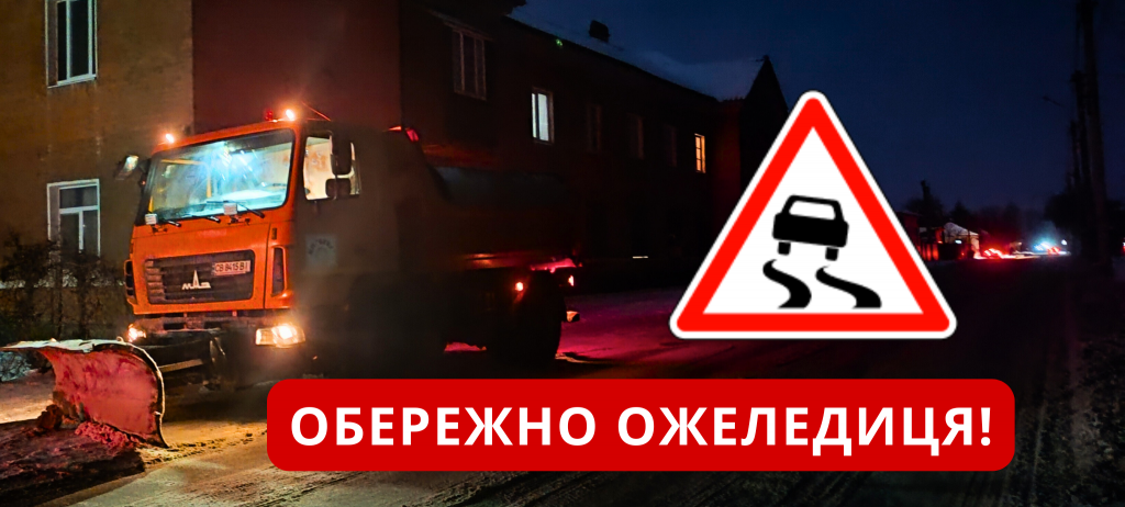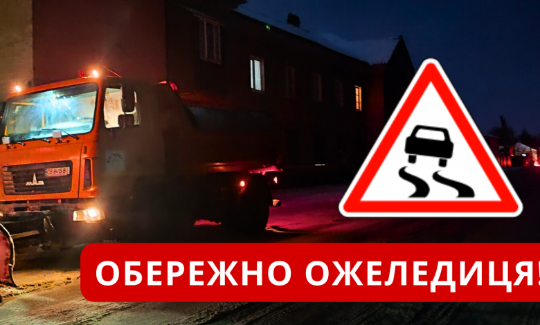 Максимальна обережність на дорогах — покриття слизьке, місцями як скло. Спецтехніка КП «ВУКГ» працює у посиленому режимі. Проводиться обробка доріг протиожеледними матеріалами.